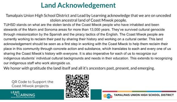 Let’s start with the Tam Union High School District’s land acknowledgment.